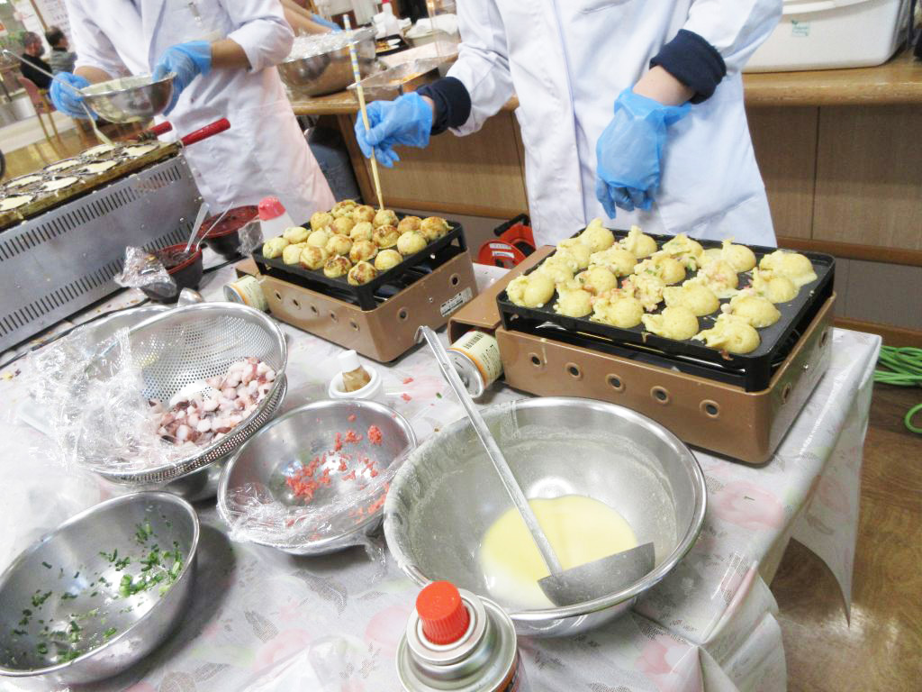 志摩豊和苑 通所リハビリで、「手作りのたい焼きとたこ焼き」のおやつのイベントが開催しました。