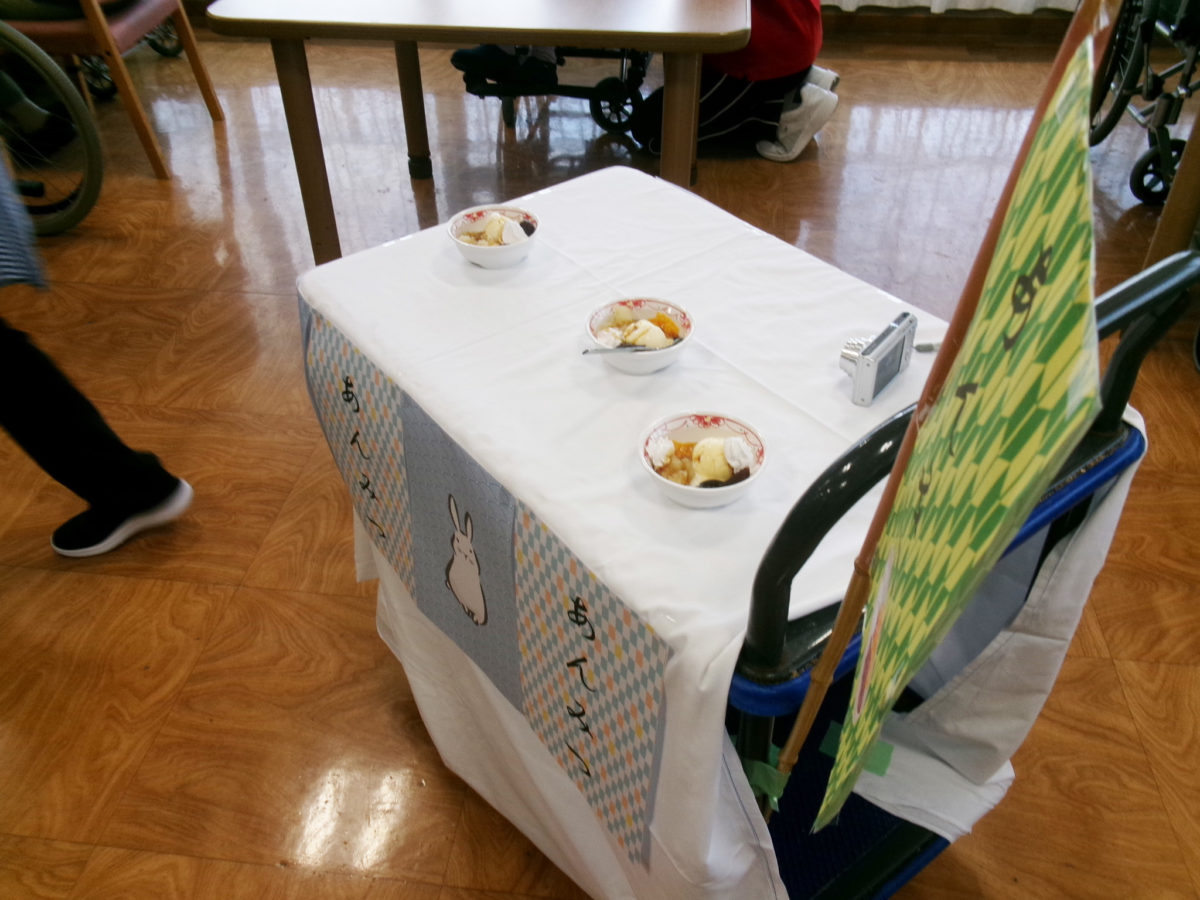 志摩豊和苑2階でおやつレクリエーション「あんみつ屋さん」をしました。